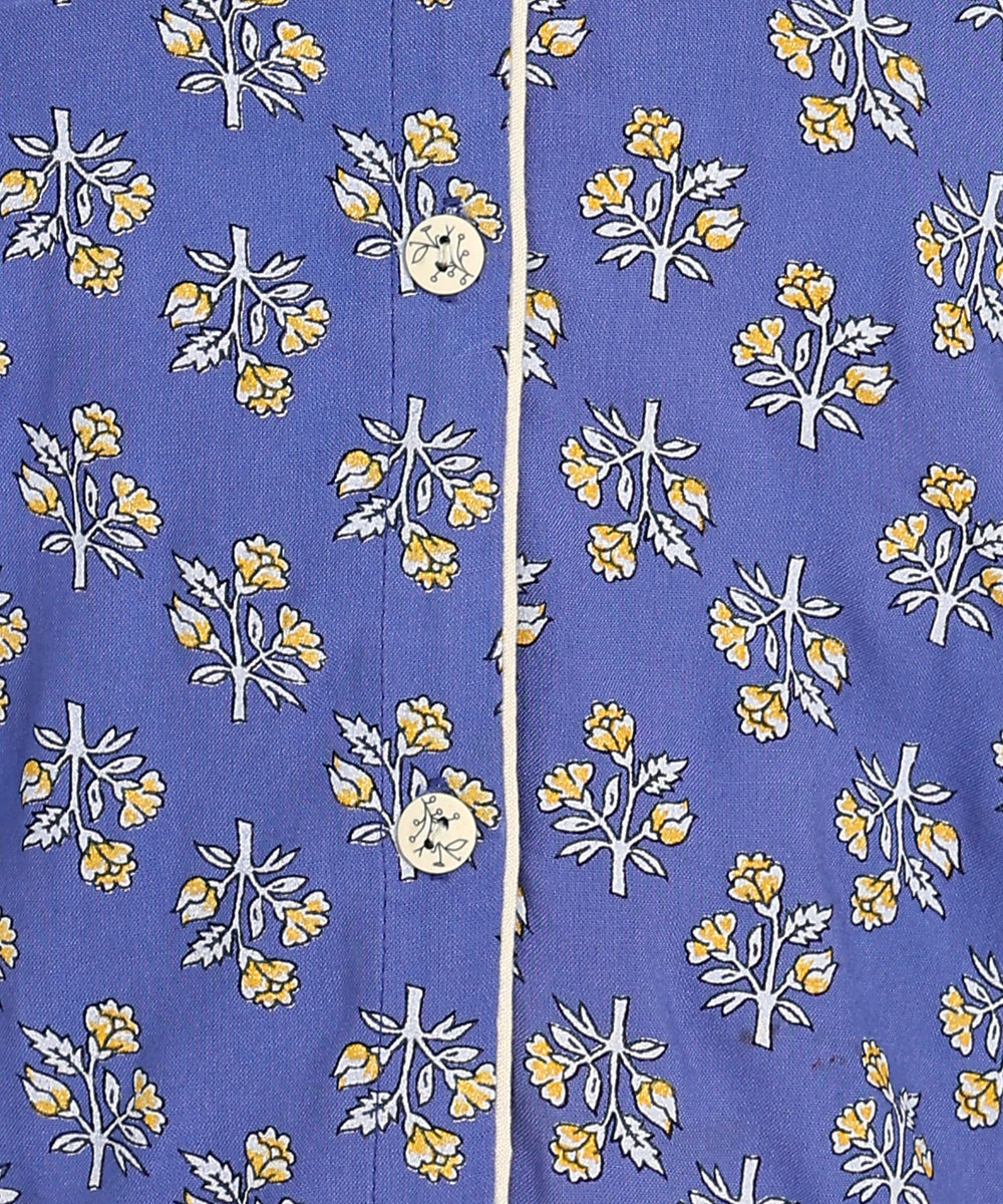 Pattern: All-over floral print in white and yellow on a rich blue base