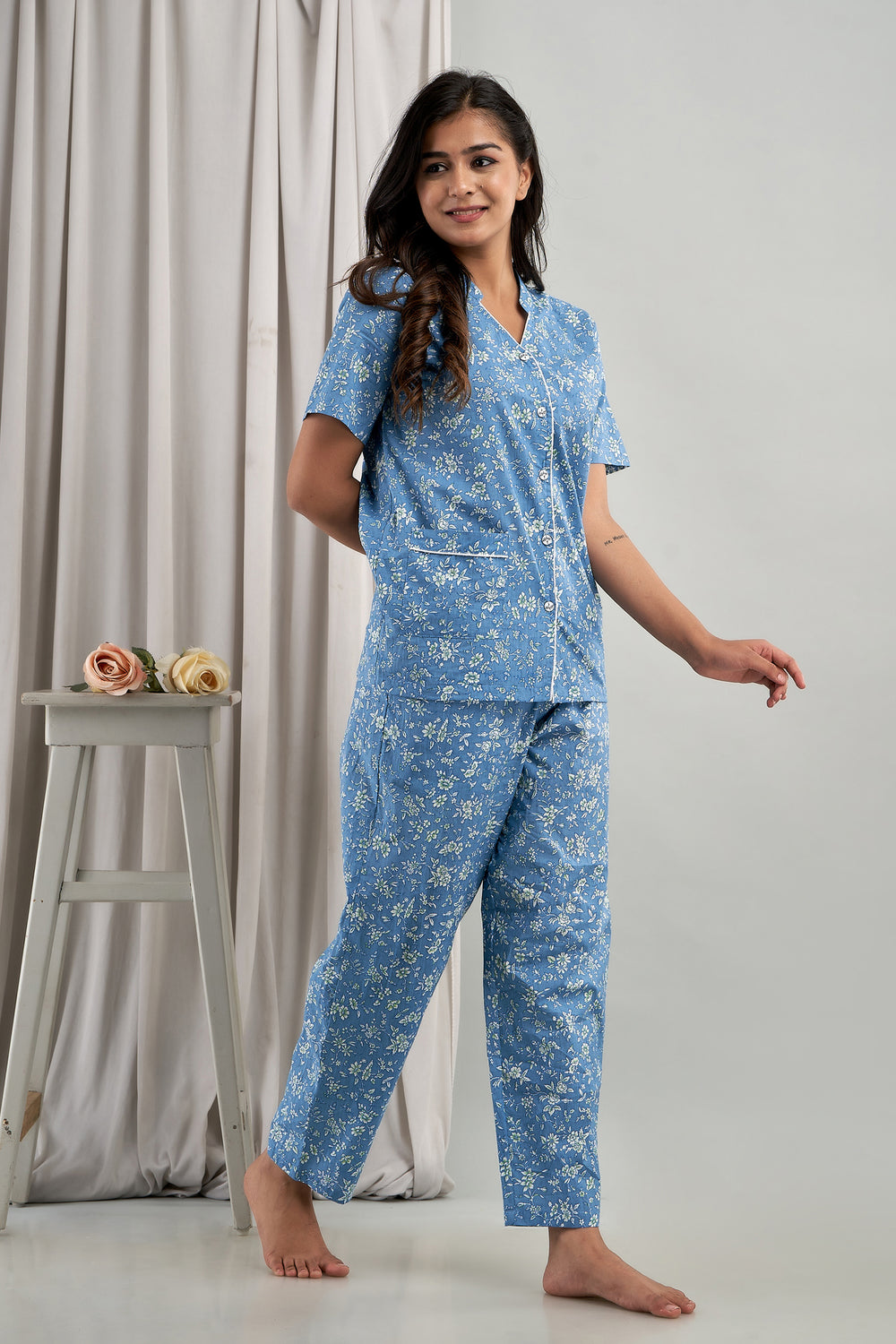 Easy like a Sunday breeze—"Bluebell Bloom" wraps you in the calm of a wildflower field under soft skies. With ditsy white blossoms and a relaxed fit, this one's made for lounging, dreaming, and everything in between.