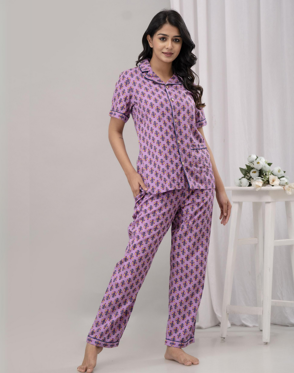 Playful, pretty, and full of charm—"Lavender Crush" brings a pop of color to your cozy time. With bold floral bunches on a lavender base and sleek black piping, it’s your new favorite way to feel cute even while lounging.