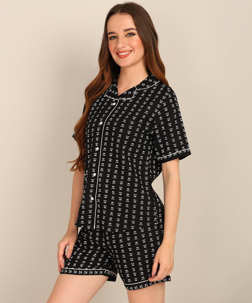 Turn the lights down and the charm up — Midnight Mini is your go-to for cozy nights and breezy mornings. With tiny white florals dancing over a bold black base, this set is equal parts cute and cool.