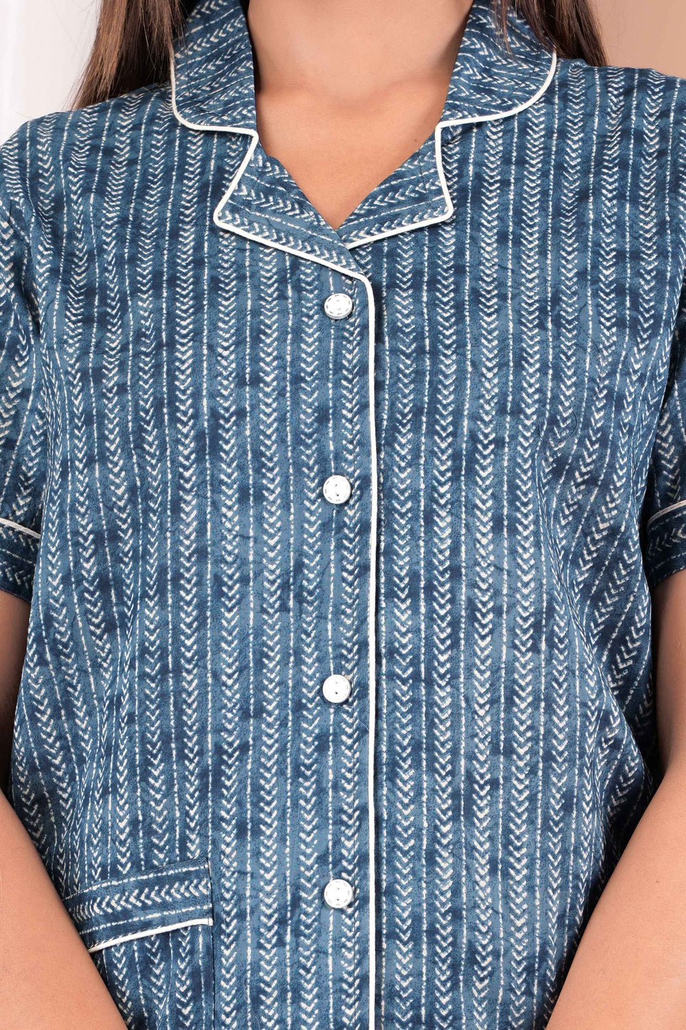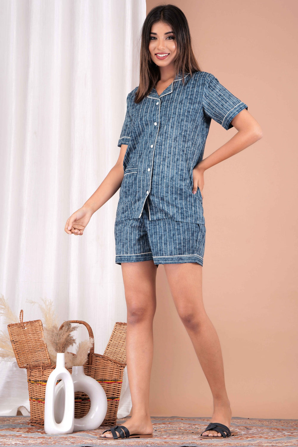 Easygoing vibes, meet tribal flair—"Indigo Drift" is made for quiet nights and slow mornings. With soft blue tones, woven-style stripes, and neat piping, it’s the kind of chill that looks as good as it feels.